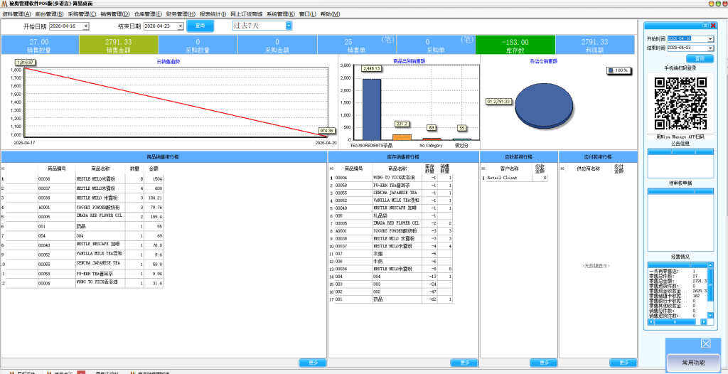 A:可以。系统实时更新库存数据,支持安全库存、上下限预警,自动生成补货建议;多门店库存统一管控,可跨店调拨盘活库存;条码化盘点精准高效,将库存误差率控制在 1% 以内,有效减少缺货积压。