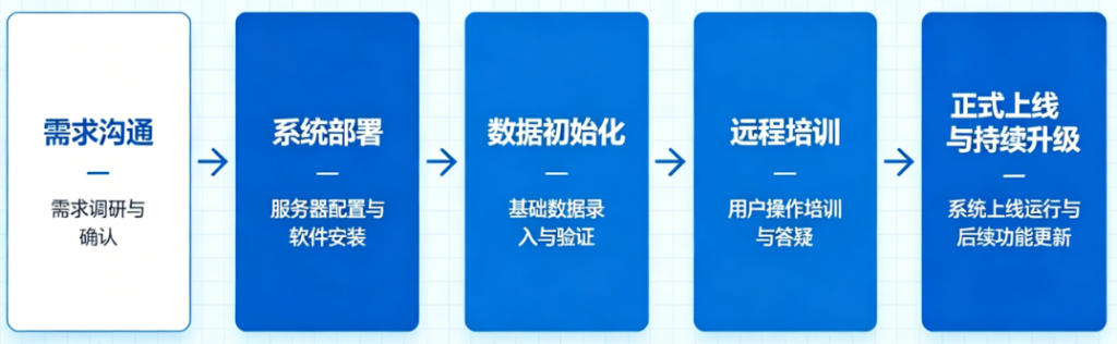 - 连锁门店(3-5 家):3-5 天完成全部门店部署 + 协同配置;