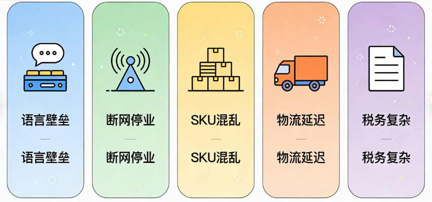 痛点五:软件稳定性差,售后无保障。部分小众收银软件、多语言库存管理软件,技术不成熟,频繁出现卡顿、闪退、数据丢失等问题,且没有专业的中文售后,出现问题无法及时解决,耽误正常经营。