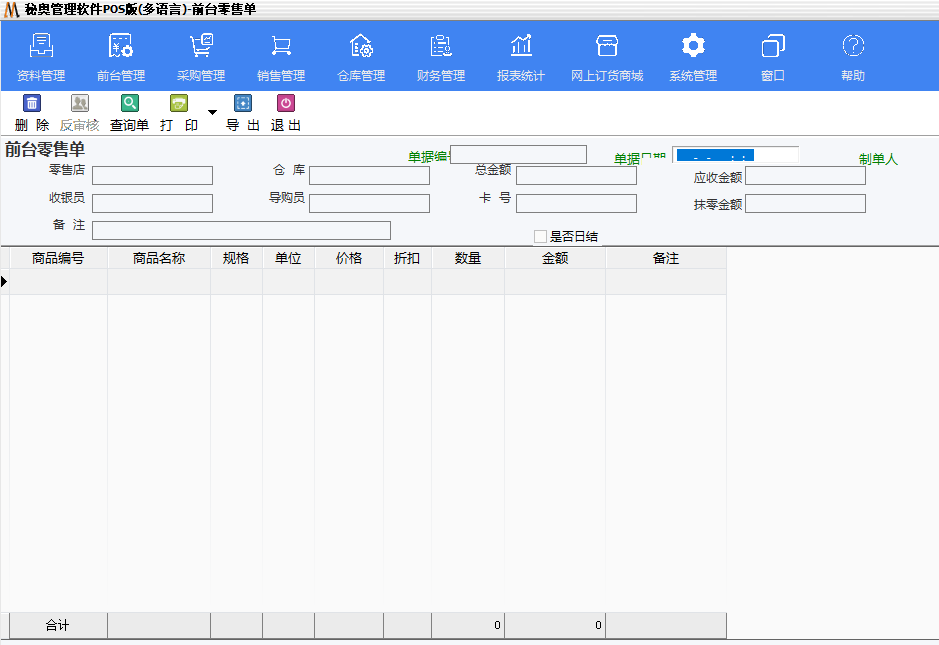 该模块用于后台查询前台的零售单,不可编辑只能查询。
