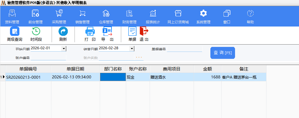 其他收入单明细表集中展示各类收入明细,便于核对与财务分析。