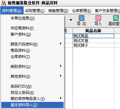 1.资料管理→基本资料导入