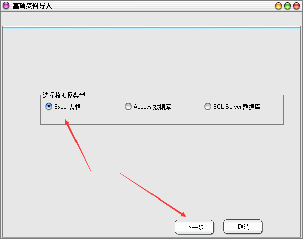 2.选择Excel后点击下一步