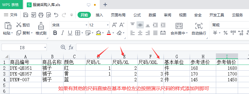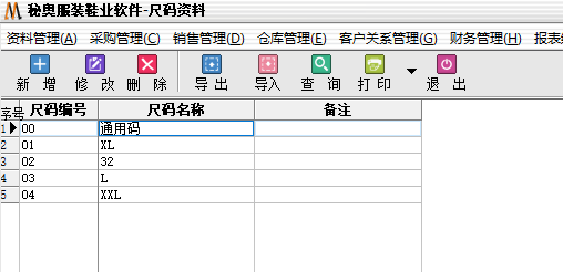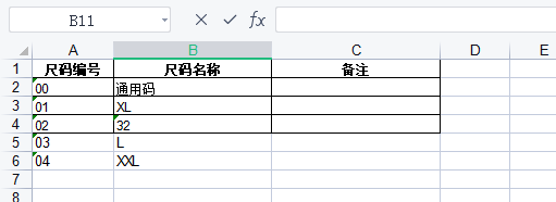 其次导入尺码资料