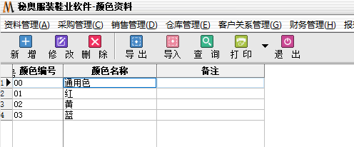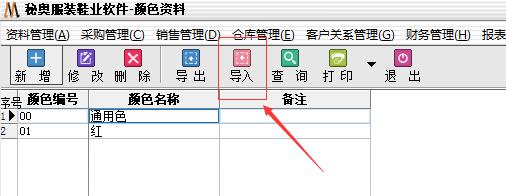 系统本身自动绑定商品条码,是根据采购入库单自动实现绑定的,所以首先需要先创建颜色资料和尺码资料(快速导入我们直接利用Excel绑定)