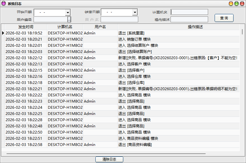 系统日志用于跟踪各操作员的操作各种详细过程,防止一些非法及错误的删除、修改、增加操作等操作,对保证公司财物的安全性具有重要意义。
