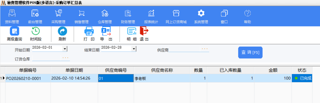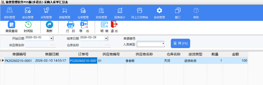 提示:单据的汇总表与明细表均是审核过后的单据。