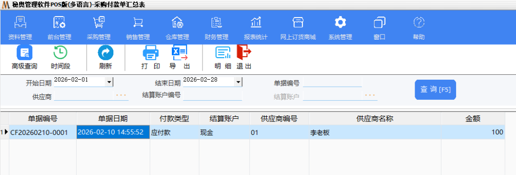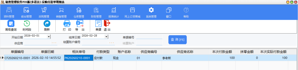 八采购付款单明细表