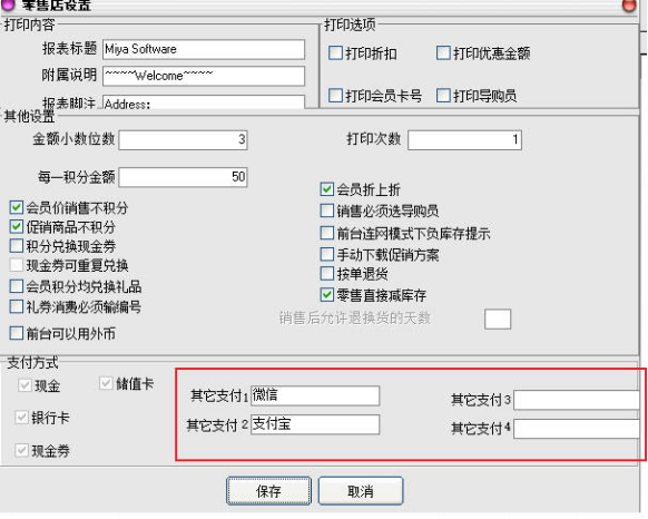 3、金额小数位数 该项为前台收银时所显示金额的小数位数,系统默认为2位,您可以自定义。