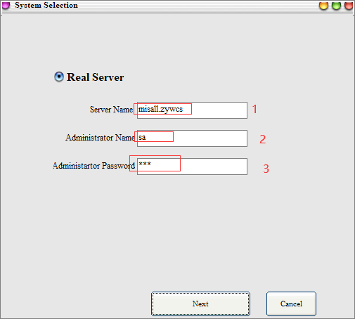 Login software we need to connect to the server for login configuration, double-click to open the software we can directly enter the corresponding server name, administrator account and password, when you’re done, just click next. (note: server domain name without spaces, admin name default: sa)