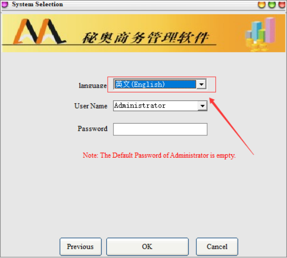 After the next step will be directly out of the set of account name, to confirm the set of account name and their registration name is consistent, then click the next step to login. Then click on the next step will be entered into the login system interface, you can select the language you need, select the corresponding user to enter the password after login (note: System Administrator account is empty before the default is not set)