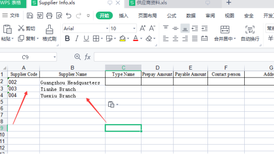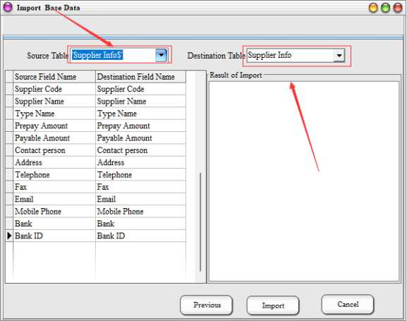Step 2: Edit the information you want to import, Save the Excel File, and close the Excel table, open the software-basic data import → Select Excel → Select Excel file path → select the right side of the destination source data table (select the supplier information)→ select the source data table → start importing → Import is complete