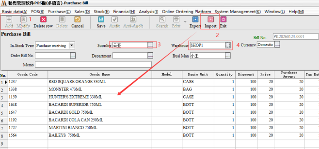 Remember to click on the new import documents, after the new selection of the corresponding warehouse and supplier directly after the click to import