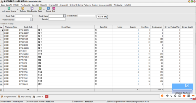 If you find the stock quantity error, you can according to the header at the beginning of the period, the number of this period, the number of three fields out of the warehouse to see which link is the problem