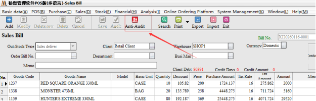 After entering, you can find that the documents have been audited. If you need to modify them, you need to first-counter-audit-then click-modify, the need to modify the quantity of goods to adjust the number of required out of the warehouse after-save-audit-you can.