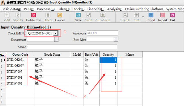Add a new entry form, select the original method two orders, input the remaining inventory quantity of goods