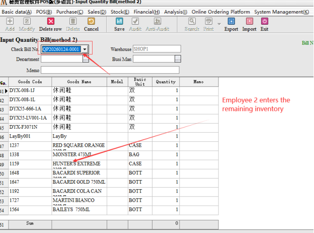 Inventory list (Method 2) : mainly for multi-person inventory, different employees operate the same inventory documents, followed by a summary.