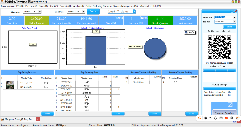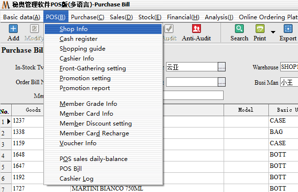 Step 1: Login front desk, you need to background to establish retail information, configure the cash register, create cashier and other related operations