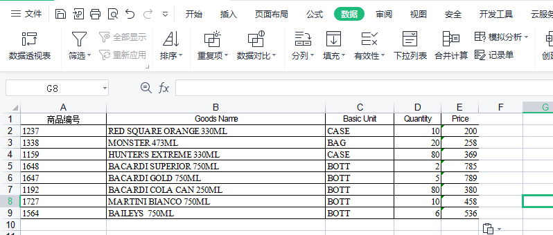 First Step: to import the basic information of goods, first need to organize Excel table, EXECL table must be suffix is. XLS file format, import EXECL table can not be open, be sure to close the file before importing.