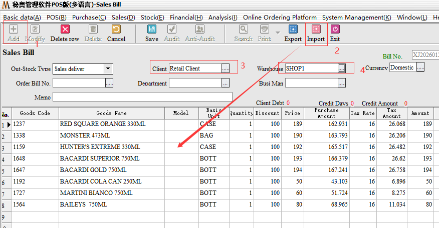 The basic operation of the Excel table import and purchase warehousing consistent, the main difference is targeted to choose sales customers and out of the warehouse after the audit can be saved.