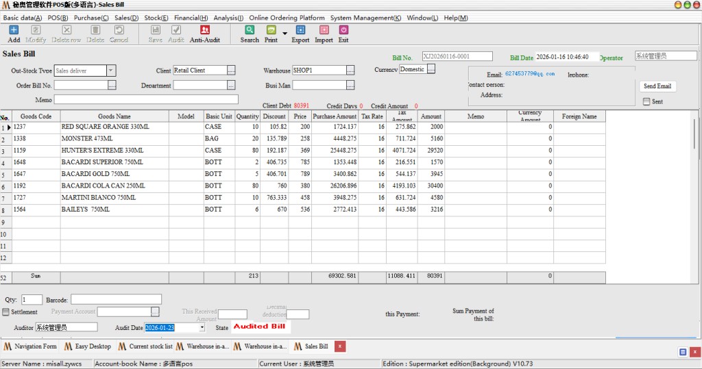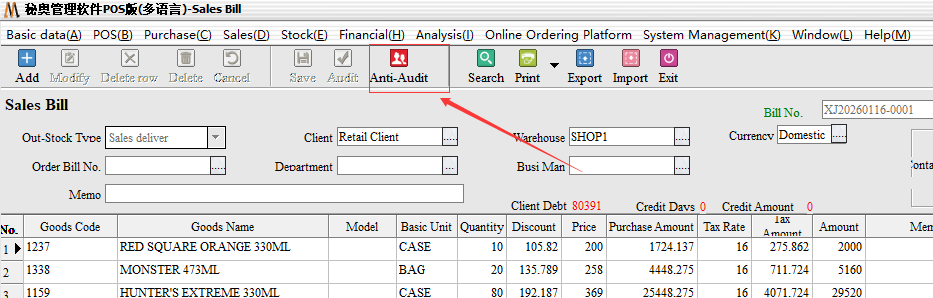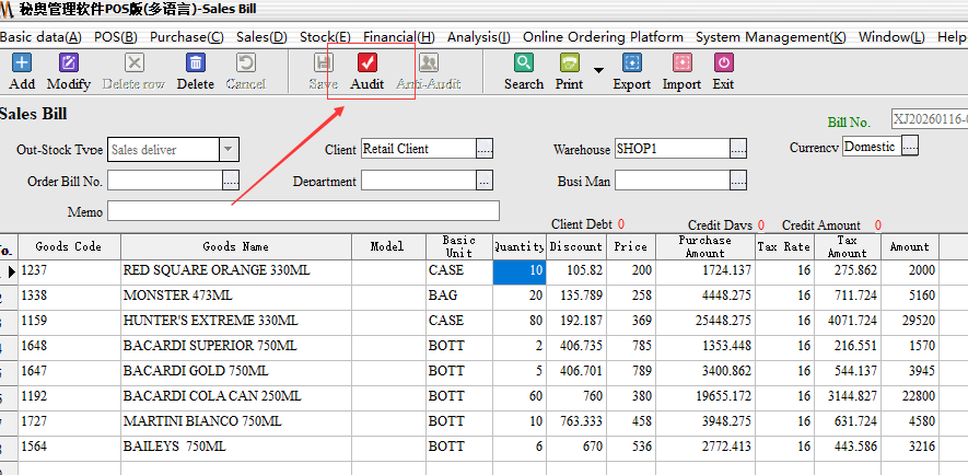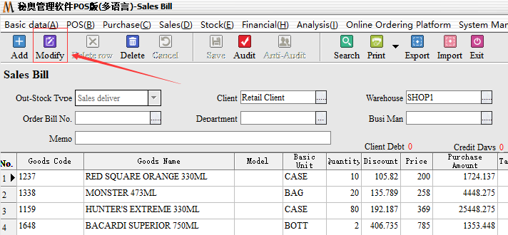 After entering, you can find that the documents have been audited. If you need to modify them, you need to first-counter-audit-then click-modify, the need to modify the quantity of goods to adjust the number of required out of the warehouse after-save-audit-you can.