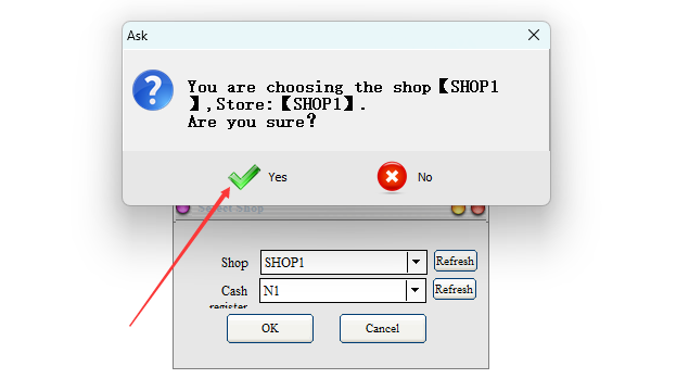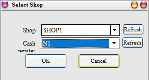 Select the appropriate retail store and cash register, and then click OK