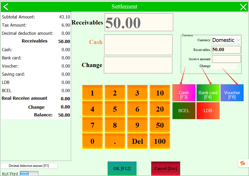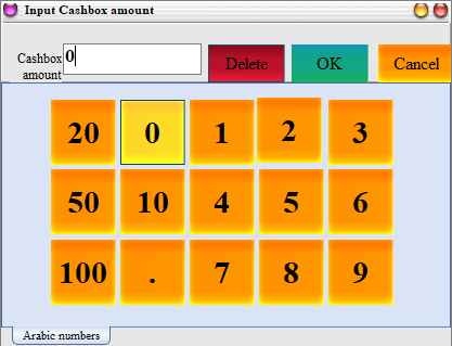 According to their own actual situation to enter the amount of cash box, no 0(note: similar to the total supermarket change)
