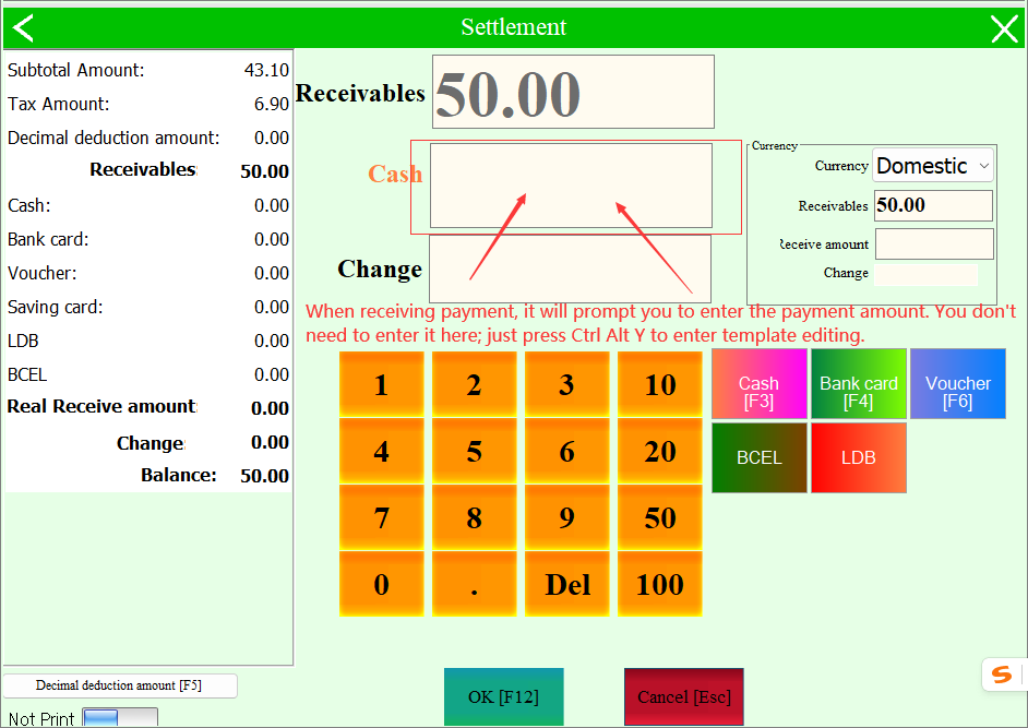 The first step: modify the receipt first need to enter the receipt modification interface, if only POS supermarket version, need to point to the collection interface, then hold down Ctrl + Alt + Y key to achieve access to edit the receipt page (it is best to choose a product in advance to see the style)