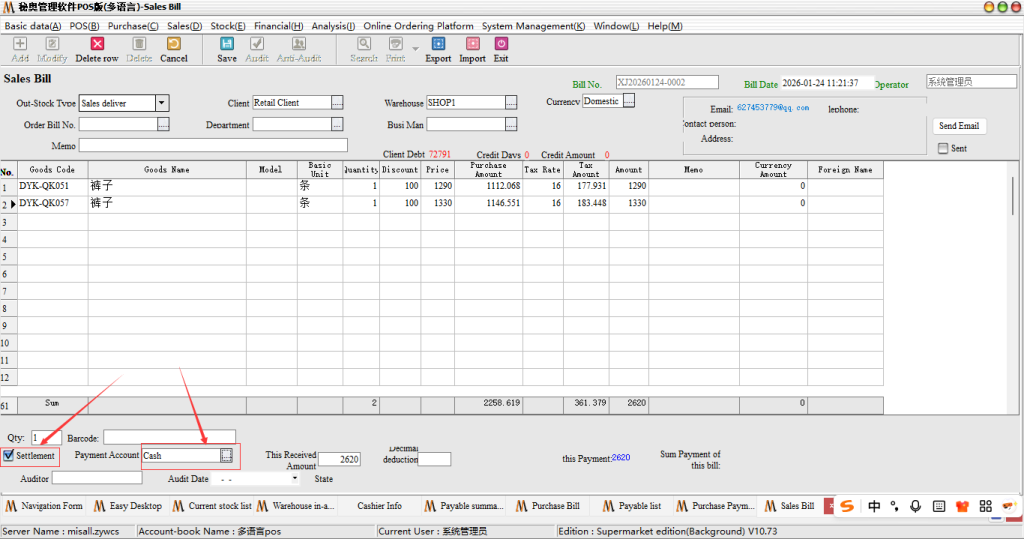 Steps: first of all, direct collection, in the time of issuing bills to check the settlement, as shown below: