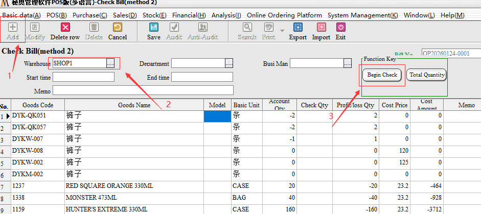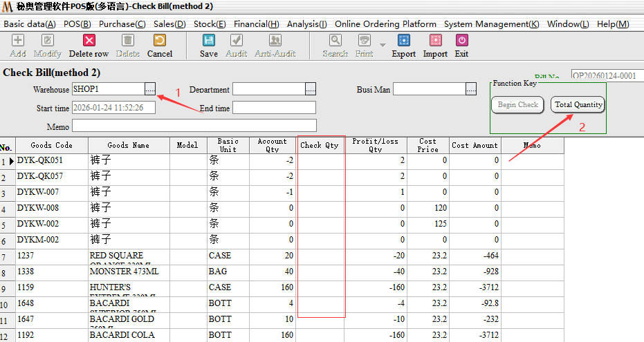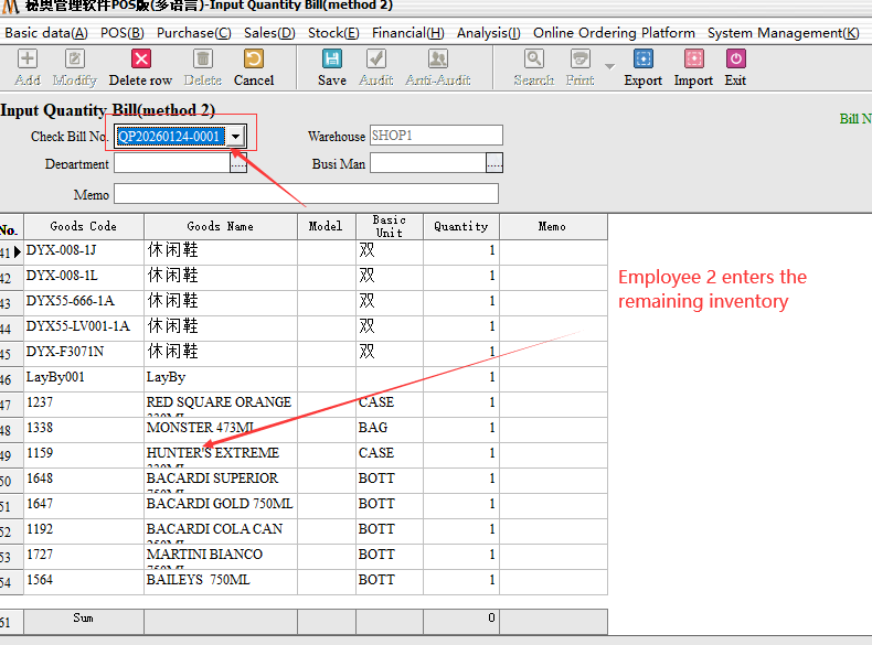 Inventory list (Method 2) : mainly for multi-person inventory, different employees operate the same inventory documents, followed by a summary.
