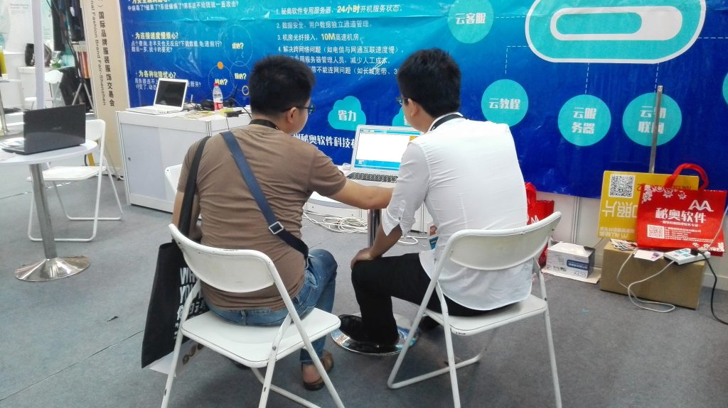 展位现场人流如织,众多服装品牌商、代理商驻足咨询,深入交流门店管理、供应链协同等解决方案。