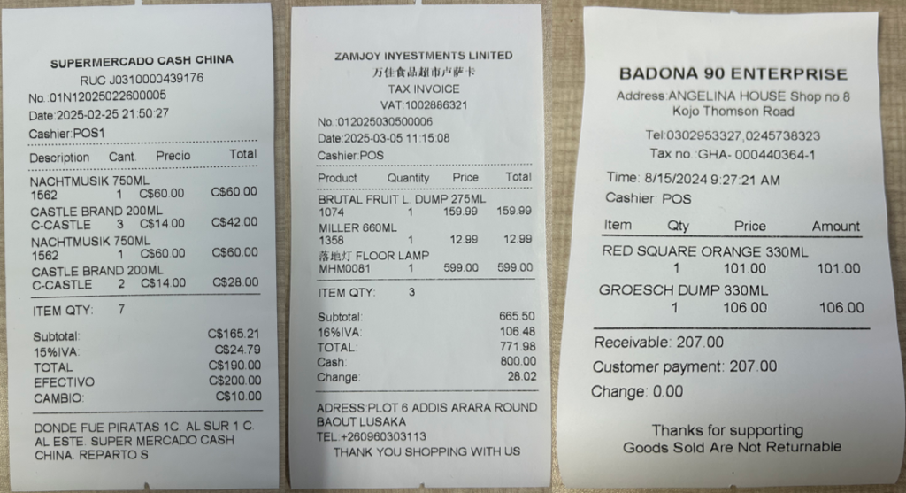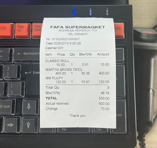 无论是大型超市、特色餐厅、机场免税店还是跨境体验店,只需搭载秘奥相应系统,即可轻松打印中文、英文、西班牙文、阿拉伯文等多国文字,完美适配不同国家与地区的消费需求。正如这张来自“FAFA SUPERMARKET”的示例小票所示,从店铺信息、商品明细到金额汇总,排版规整、对比鲜明,确保了核心信息的直观传达。