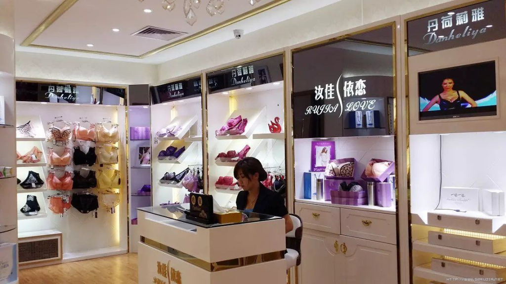 走进汝佳服饰,暖白色灯光与浅木色货架营造出细腻的女性空间。内衣、睡衣等商品分类陈列,像一场静谧的时尚展。